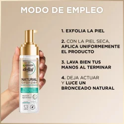Garnier Natural Bronzer, gracias a su activo autobronceador 100% de origen vegetal, ofrece una solución inmediata para un bronceado natural y luminoso. Nuestra primera mousse autobronceadora transparente elaborada con un 92% de ingredientes de origen natural para un bronceado intenso en tan solo una aplicación.