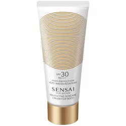 Silky Bronze Protective Suncare Cream for Body / PA++++ es una crema solar corporal que ofrece una protección eficaz frente a los rayos UV, mientras combate los signos visibles del envejecimiento prematuro dejando un acabado transparente, sin sensación grasa y siendo muy resistente al agua y a la fricción.