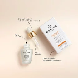 Protege la piel de las zonas expuestas durante todo el año (rostro, cuello-escote y manos) del estrés ambiental, la contaminación, la radiación UVA/UVB e IR, y la luz azul, todos ellos factores responsables del envejecimiento cutáneo y de la aparición de discromías.