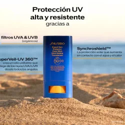Este stick transparente fácil de llevar, ofrece una protección efectiva contra los rayos UVA y UVB. Cuenta con la tecnología SynchroShield™, que refuerza su capa protectora con la exposición al calor, agua y sudor.