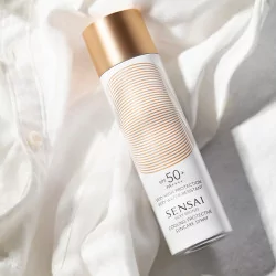 Silky Bronze Cooling Protective Suncare Spray SPF50+ PA++++ es un espray solar corporal formulado con la innovadora tecnología Uniforming Cool Shield, que proporciona una hidratación inmediata y una sensación de frescor revitalizante, mientras protege eficazmente contra los rayos UVA y UVB sin dejar residuos.