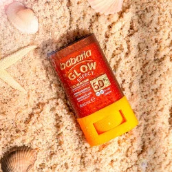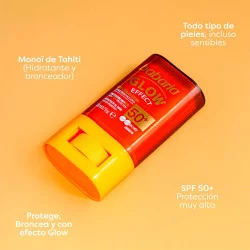 Protege y broncea. Con efecto Glow para una piel brillante y luminosa. SPF 50+Protección Muy Alta l UVB UVA IR HEV. Todo tipo de pieles (incluso sensibles). Resistente al agua.