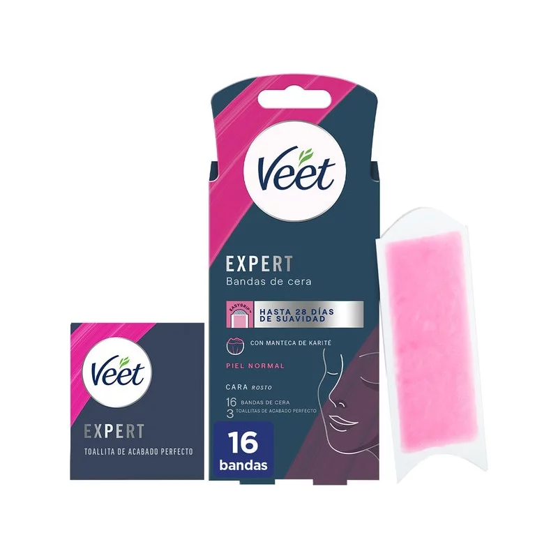 Las Bandas de cera Veet Expert han sido diseñadas para permitir una aplicación precisa, por lo que es ideal para zonas pequeñas y delicadas como el labio superior, las mejillas y la barbilla.