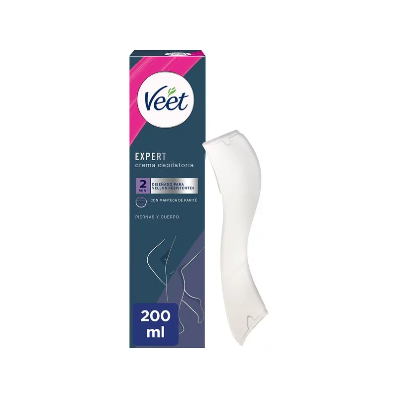 Veet Expert Crema depilatoria para piernas y cuerpo, está formulada con manteca de Karité y enriquecida con un hidratante natural encontrado en la piel.