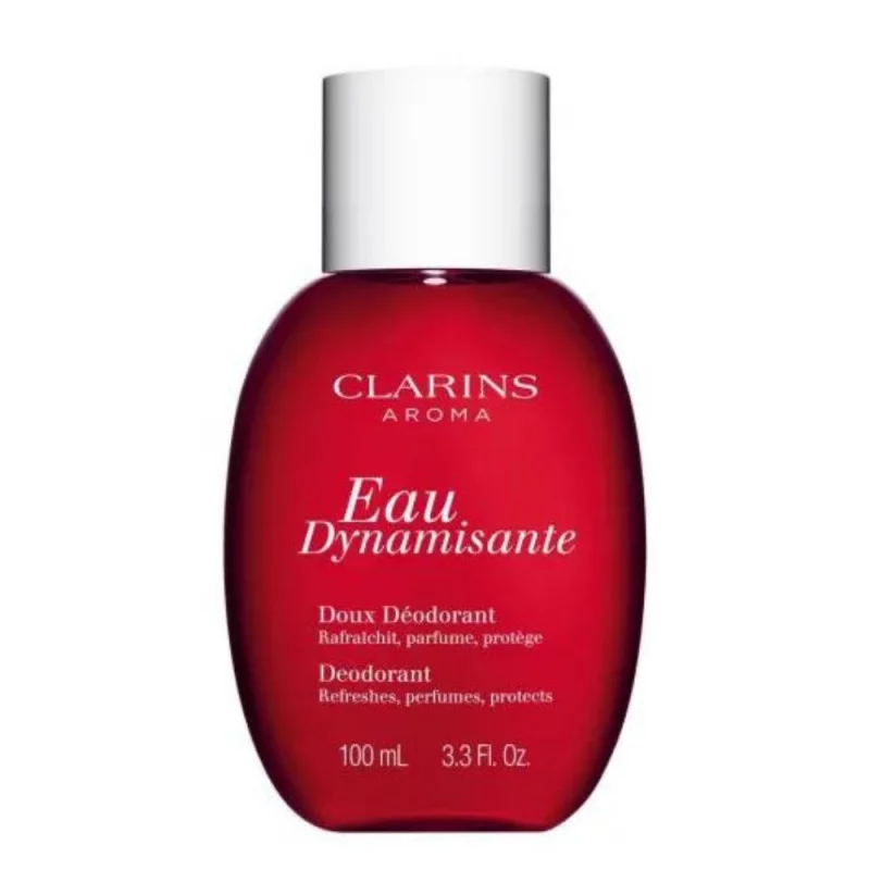 La icónica Eau Dynamisante Clarins se ofrece como desodorante en spray para prevenir y neutralizar de forma continua los olores. Deja un delicado perfume sobre la piel con las notas frescas y vigorizantes del Agua de tratamiento.