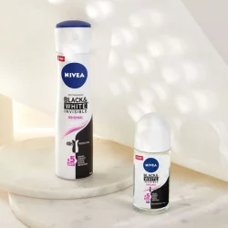 NIVEA Black & White Invisible Original es un roll on desodorante que ofrece protección con 5 beneficios en 1. Desarrollado en colaboración con los expertos en textiles del Instituto Hohenstein, esta gama de desodorantes ofrece resultados antitranspirantes de alta eficacia además de proteger de las MANCHAS para mantener el color original de la ropa clara y oscura. Bloquea el OLOR con sus agradables fragancias, evita el SUDOR durante 48 horas de eficacia antitranspirante, no deja RESIDUOS en la piel ni en la ropa y previene las IRRITACIONES de la piel porque su fórmula única se ha optimizado para el uso diario. Con todo el cuidado de la piel de NIVEA, deja además una agradable sensación duradera de limpieza y frescor. En resumen: es el compañero perfecto para mantener protegida tanto tu piel como tu ropa favorita en cualquier situación.
