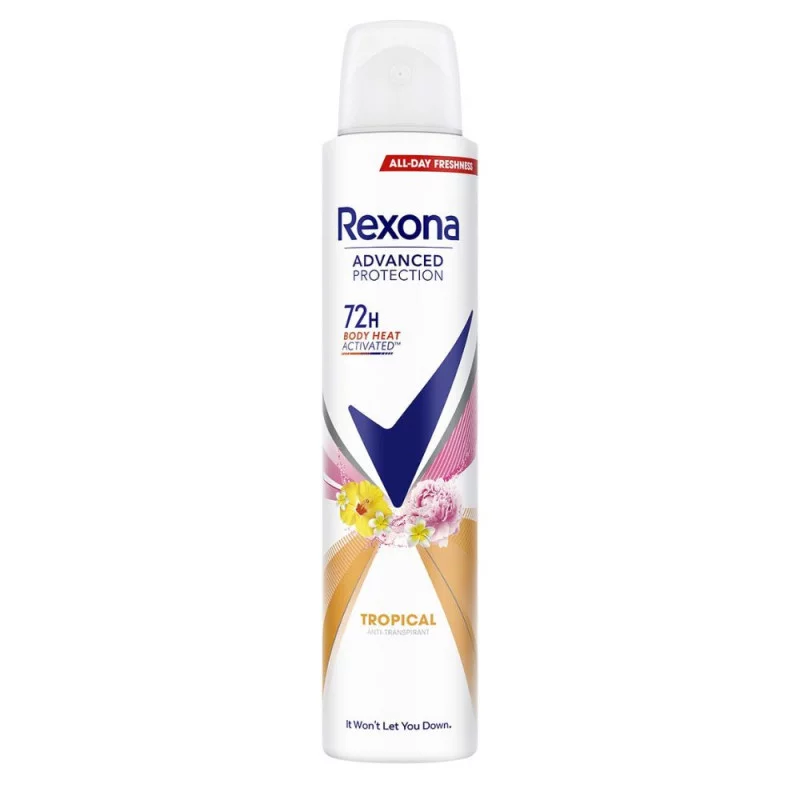 Rexona Woman Advanced Protection Roll-On Tropical brinda 72 h de protección. Protección eficaz en spray con un aroma tropical y tecnología Motionsense™