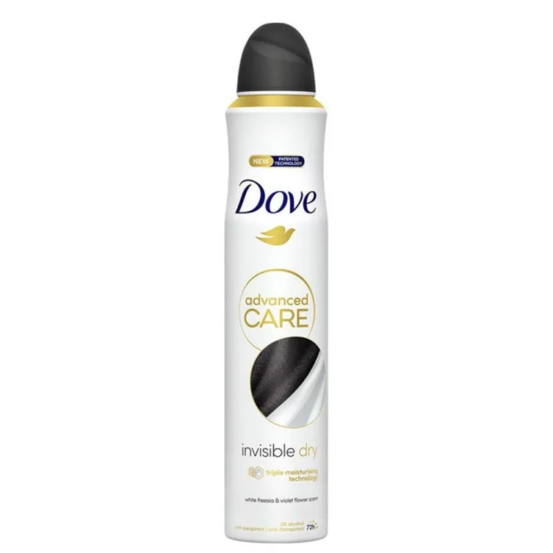 Dove Invisible Dry Desodorant Spray es un desodorante en spray que elimina la suciedad y proporciona hasta 48 horas de protección. Su fórmula sin alcohol contiene poderosos ingredientes naturales: aceites nutritivos y humectantes que restauran la piel y la vuelven increíblemente suave.
