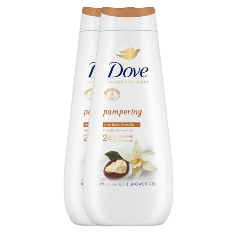 ¿Estás buscando un gel de baño indulgente para agregar un poco más de autocuidado a tu rutina diaria? El gel de ducha Dove Advanced Care Mimos es un gel de ducha rico y cremoso que hidrata profundamente mientras limpia. A diferencia de otros productos de manteca de karité, el gel de ducha Dove Mimos tiene una fórmula hidratante que contiene una mezcla única de nutrientes naturales de la piel para brindarte el cuidado de Dove que conoces y amas. A diferencia de los geles de ducha comunes, Dove Advanced Care está creado con la tecnología patentada de microhidratación para renovar la hidratación natural de tu piel durante 24 horas. Una nueva tecnología revolucionaria de Dove que deposita millones de diminutas pero poderosas microgotas humectantes que, en lugar de desprenderse, se absorben profundamente y trabajan continuamente con el proceso natural de renovación de tu piel para fortalecer la barrera cutánea y ayudar a retener y aumentar la humedad, incluso después de ducharte.