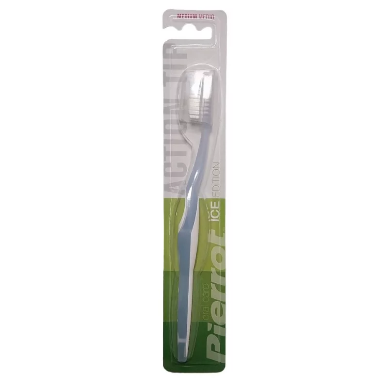 Cepillo Action Tip de Pierrot con filamentos texturizados, punta activa, zona de masaje y mango ergonómico.