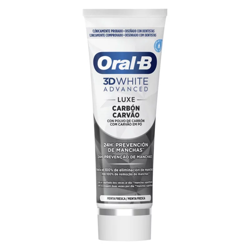 La pasta dentífrica Oral-B 3D White Advanced Luxe cuenta con la tecnología de blanqueamiento avanzado de Oral-B. La espuma penetra profundamente eliminando activamente las manchas superficiales en áreas de difícil acceso, mientras un nutritivo flúor fortalece el esmalte. También protege de forma activa frente a las manchas superficiales durante 24 horas con dos cepillados al día.