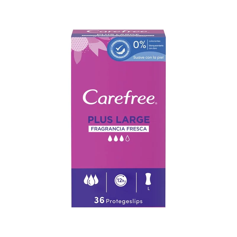 Pack de 36 Protege Slip Puls Large de Algodón Fresca Carefree Plus.