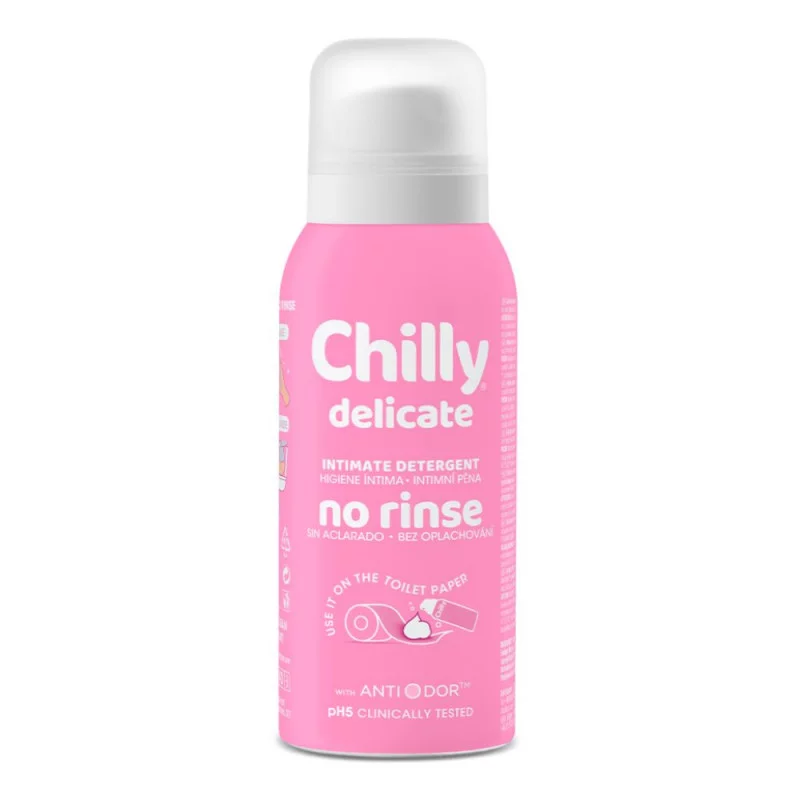 ¡Abrir, agitar, pulverizar, limpiar y tirar! Descubre una rutina de higiene íntima totalmente nueva y más sencilla con los geles Chilly No Rinse en espuma sin aclarado, la última novedad de Chilly para sentirte siempre limpia y a gusto, dentro y fuera de casa. La fórmula No Rinse es una espuma suave y compacta que puedes pulverizar sobre papel higiénico para limpiarte cada vez que vayas al baño, sin necesidad de aclarado: delicada y respetuosa con tu pH y potenciada con molécula ANTI-ODOR.