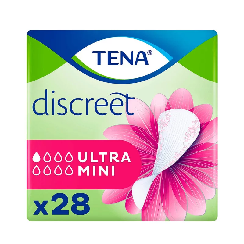 Si tienes pequeñas pérdidas de orina y algún que otro goteo, prueba el protegeslip TENA Discreet Ultra Mini para la incontinencia. Su diseño superfino, pero muy absorbente, te ofrece una protección discreta y segura.