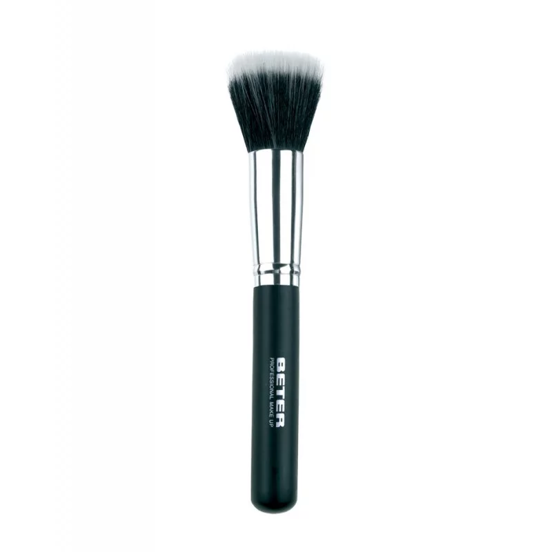 De fibra sintética y pelo de cabra, su forma plana totalmente circular adhiere el producto de forma efectiva y permite aplicar y mezclar todo tipo de texturas fluidas, emolientes o en polvo.