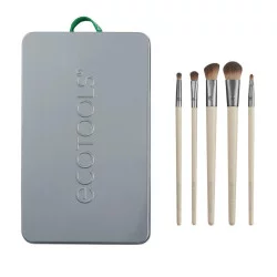 El juego de brochas para maquillaje de ojos Daily Defined de EcoTools está diseñado para crear tus looks de ojos favoritos y organizar tu espacio de belleza. Este kit incluye cinco pinceles para ojos, tres tarjetas de instrucciones sobre looks de belleza y una bandeja de almacenamiento. Los pinceles incluyen un pincel grande para sombra de ojos, un pincel para pliegues en ángulo, un pincel para sombra de ojos acentuada, un pincel para delinear detalles y un pincel para difuminar el delineador.
