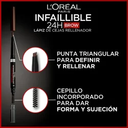 ¿Has notado que tus cejas se han adelgazado con los años? Es un fenómeno natural que nos sucede a todos y es difícil de evitar. Con L'Oreal Infallible Brows Filler Brow Pencil, tendrás cejas más llenas durante 24 horas.