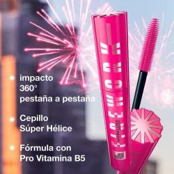 Expande tus pestañas 360º con la nueva máscara de pestañas Lash Sensational Firework. Alarga tus pestañas una a una y consigue una mirada más grande en un BOOM.