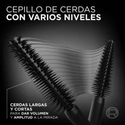 Formulada con un 5% de complejo StretchFlex. Este ingrediente especial envuelve cada pestaña en una fórmula ultra negra y flexible, realzando la profundidad de la mirada en cada aplicación. Además, su cepillo multiple consigue una mirada visiblemente más grande. Las cerdas cortas cargan las pestañas con volumen ultra negro y las cerdas largas aportan un efecto abanico y extienden las pestañas del interior al exterior.