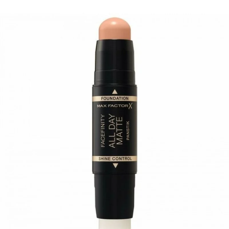 Facefinity All Day Matte Panstick de Maxfactor es una barra de base de maquillaje de doble punta con 30% más de pigmentos puros.