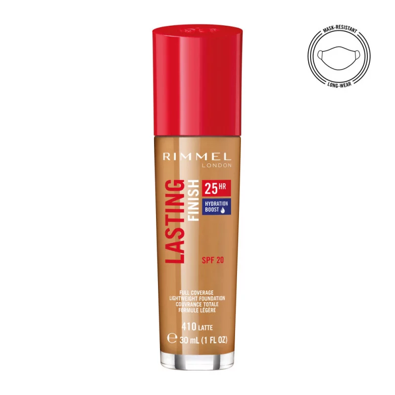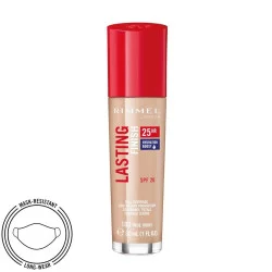 Base duradera de Rimmel. Fórmula que es resistente al calor, el sudor y la humedad y no se mancha.