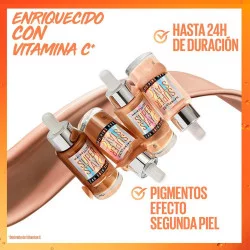 Maybelline Super Stay hasta 24H Skin Tint Foundation + Vitamina C proporciona un tono de piel brillante y uniforme gracias al poder de la vitamina C.