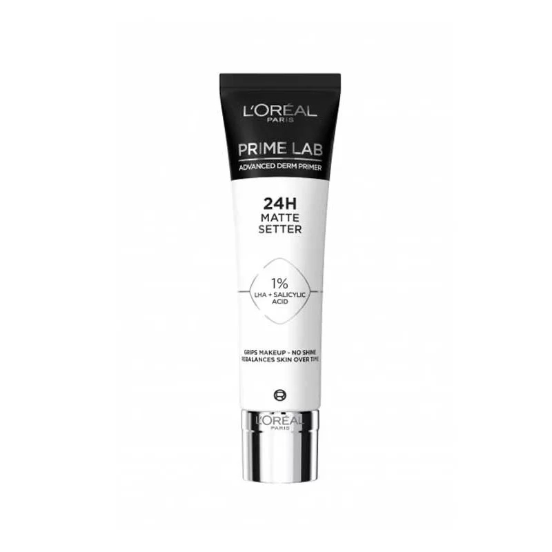 La prebase dermocosmética de Loreal Paris llamada Prime Lab 24h Matte Setter matifica la piel y mantiene el maquillaje en su sitio durante 24 horas.