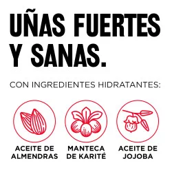 Fórmula con ingredientes hidratantes: aceite de almendras, aceite de jojoba, y manteca de karité que ayuda a mantener la hidratación de la uñas. No necesita lámpara UV.