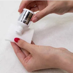 5 Limpieza /Acabado final: en este punto la superficie de tus uñas estará ligeramente pegajosa, límpiala con un algodón impregnado generosamente de Gel iQ High Shine Cleanser de esta manera te asegurarás un alto brillo. Es recomendable disponer al menos de 12 discos de algodón para realizar el proceso.
