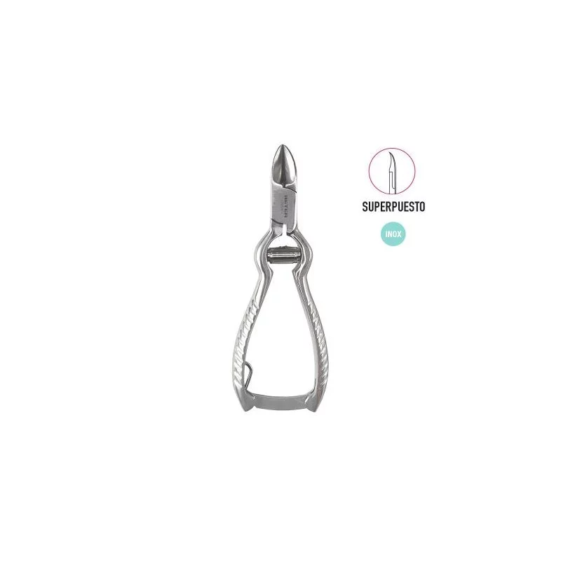 Modelo profesional con cierre ajustado de seguridad mediante muelle gusanillo. Garantiza un corte regular, preciso y seguro gracias a un riguroso proceso de fabricación con materiales de alta calidad y afilado individual. Indicado para el cuidado de las uñas de los pies. Cabezal superpuesto.