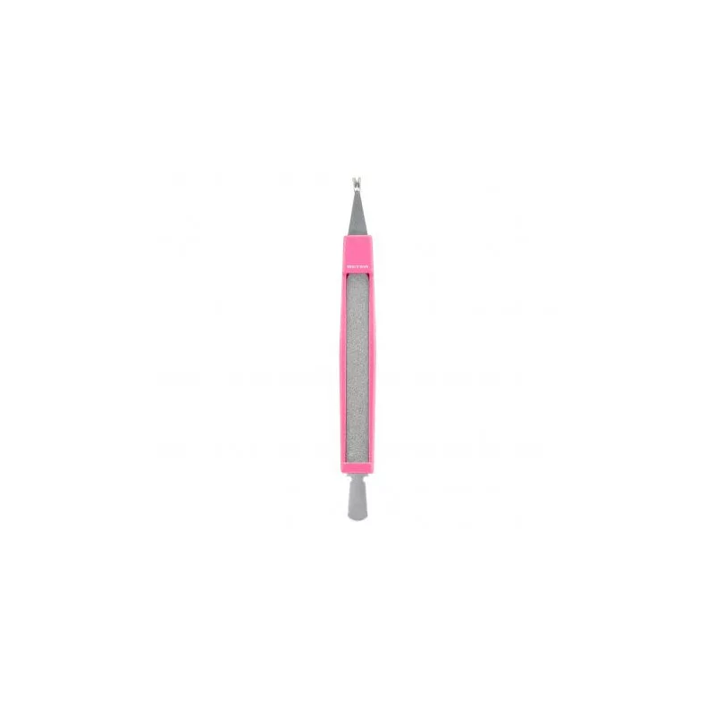 Un 3 en 1 muy práctico: cortacutículas, lima y bajapieles en una sola pieza. Fabricado en acero inoxidable tratado, permite eliminar las cutículas, despejar tus uñas y limarlas en un momento