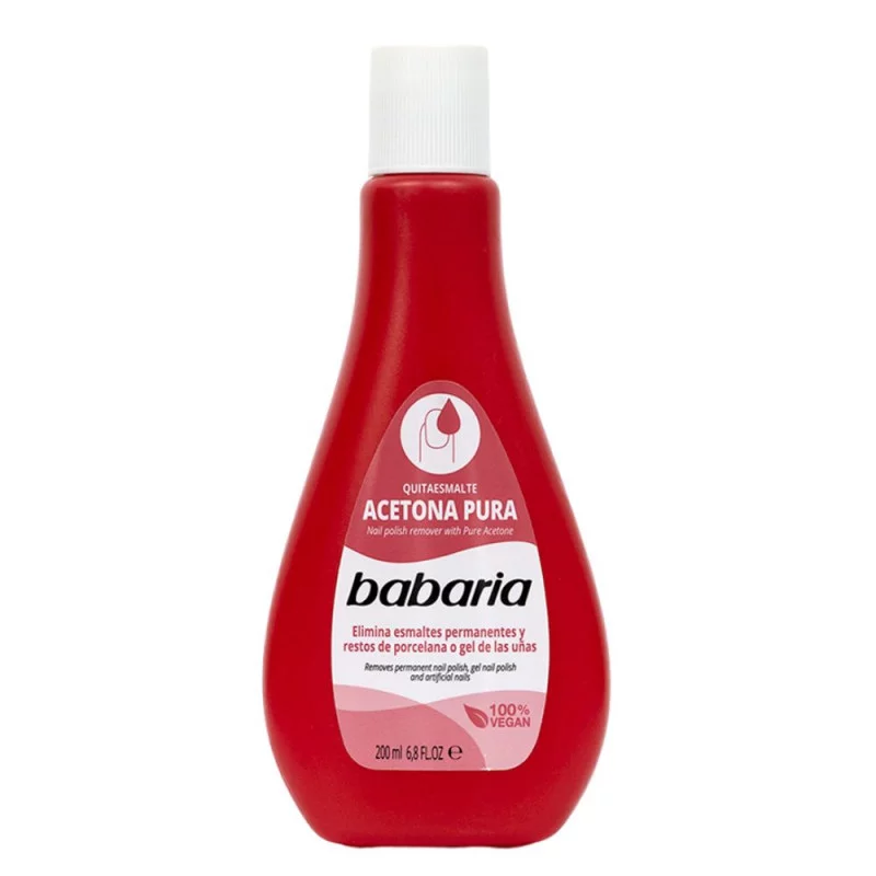 La Acetona pura de Babaria es capaz de eliminar esmaltes permanentes y restos de porcelana o gel de las uñas.