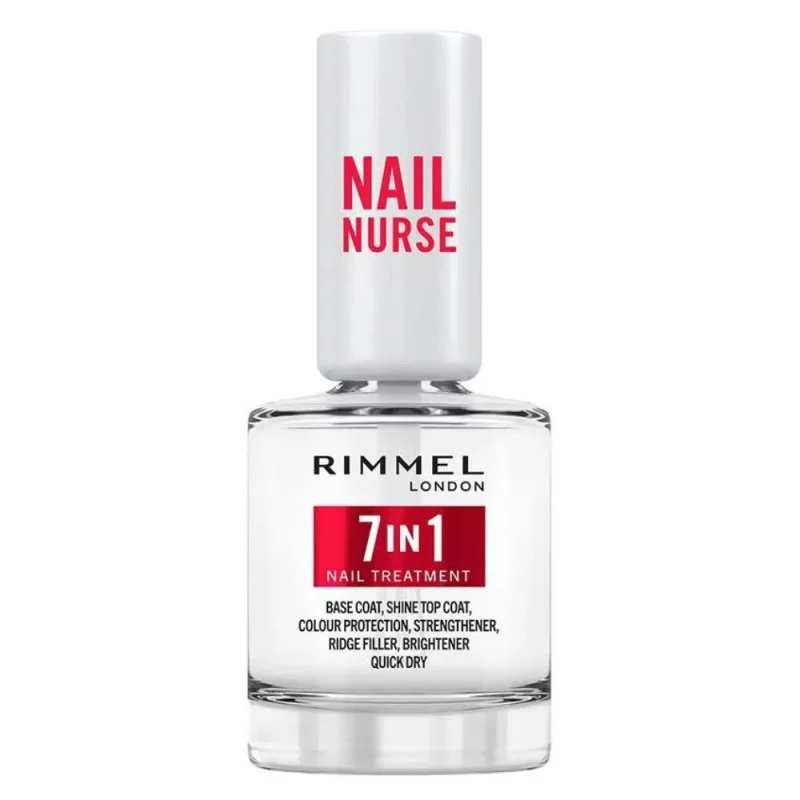 Un 7 en 1 para una salud óptima de las uñas: Base & Top Coat brillante, protección de color, fortalecedor, rellenador de crestas, abrillantador y secado rápido.