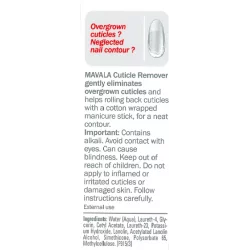 Contiene álcali. Evitar el contacto con los ojos. Puede causar ceguera. Mantener fuera del alcance de los niños. No aplicar sobre las cutículas inflamadas o irritadas o sobre la piel dañada. Siga las instrucciones cuidadosamente.