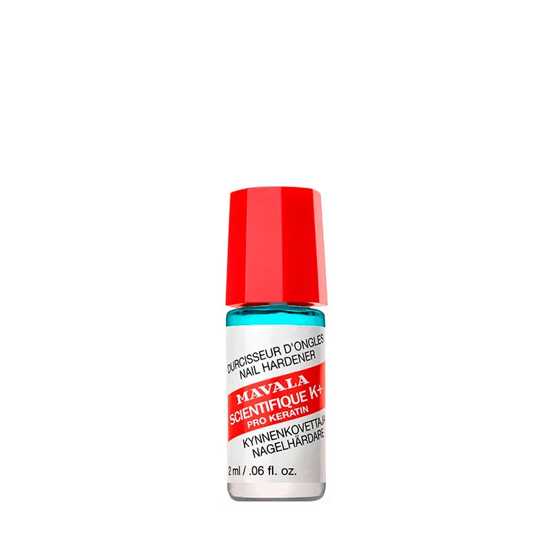 MAVALA CIENTÍFICO K+ endurece la uña gracias al ingrediente científico activo que mejora la cohesión de las fibras de queratina permitiendo que las tres capas principales de la uña se una. También contiene lágrimas de resina de cristal, una goma extraída del árbol del pistacho que ayuda al proceso natural de queratinización de las uñas, reforzándolas. Esta solución acuosa penetrante, que no es ni base ni esmalte, endurece las uñas blandas y evita que se rompan o se separen.
