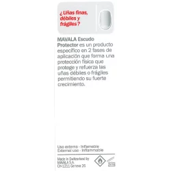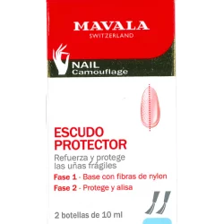 Su fórmula específica ha sido desarrollada para dar resistencia a las uñas. El ESCUDO PROTECTOR forma una protección física que protege tus uñas ante las tareas diarias y otros elementos que puedan dañarlas. Protege tus uñas ante la rotura, la escamación y los impactos con este tratamiento combinado (como MAVALA CIENTÍFICO y/o NAILACTAN), la uña se regenera y fortalece.