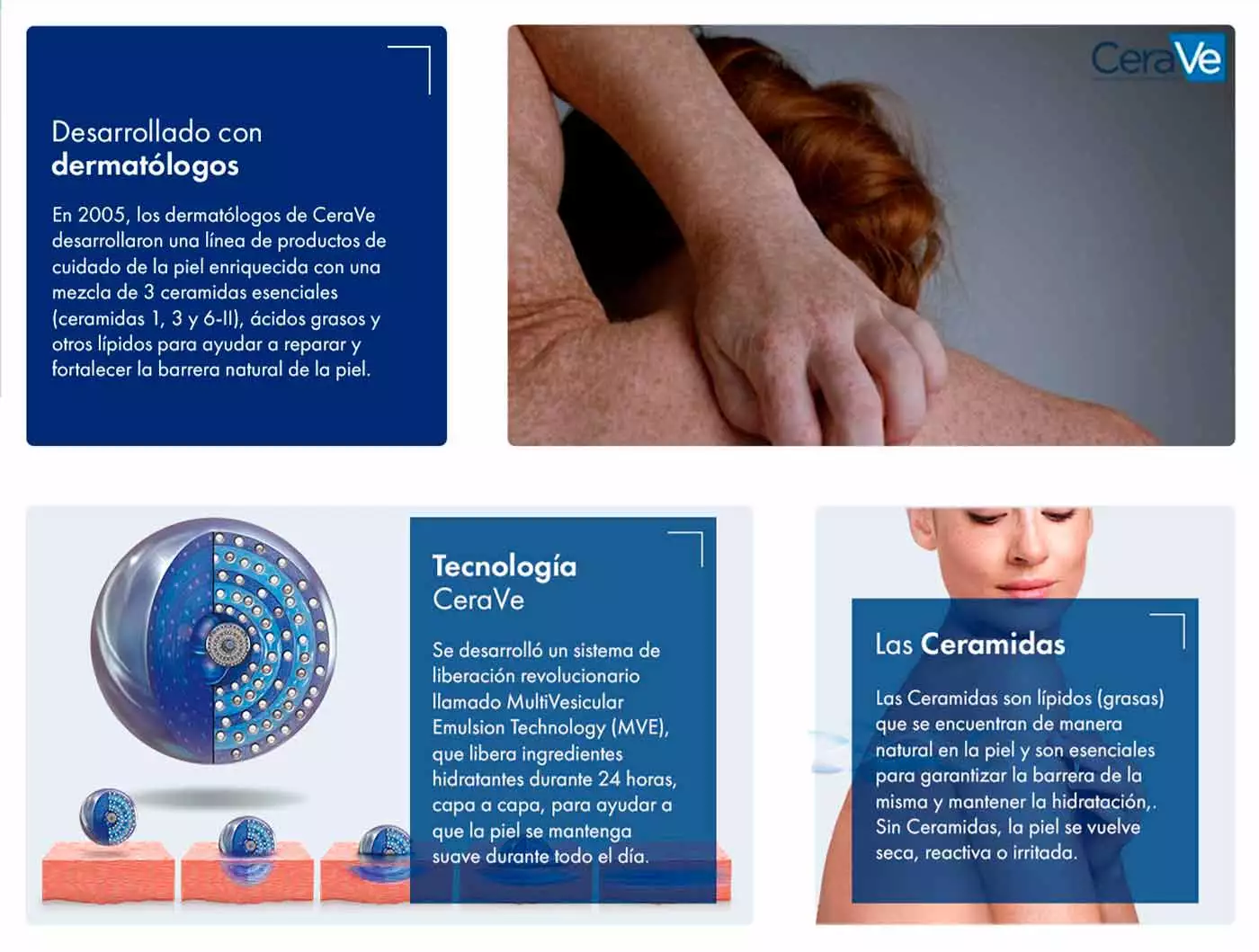 - En segundo lugar, todos sus productos han sido cuidadosamente desarrollados utilizando una tecnología exclusiva: la MultiVesicular Emulsion Technology (MVE). Esto significa que la hidratación que proporciona cada producto de Cerave no es solo superficial; gracias a la MVE, sus activos hidratantes se liberan gradualmente durante 24 horas, asegurando que tu piel esté constantemente nutrida y protegida.