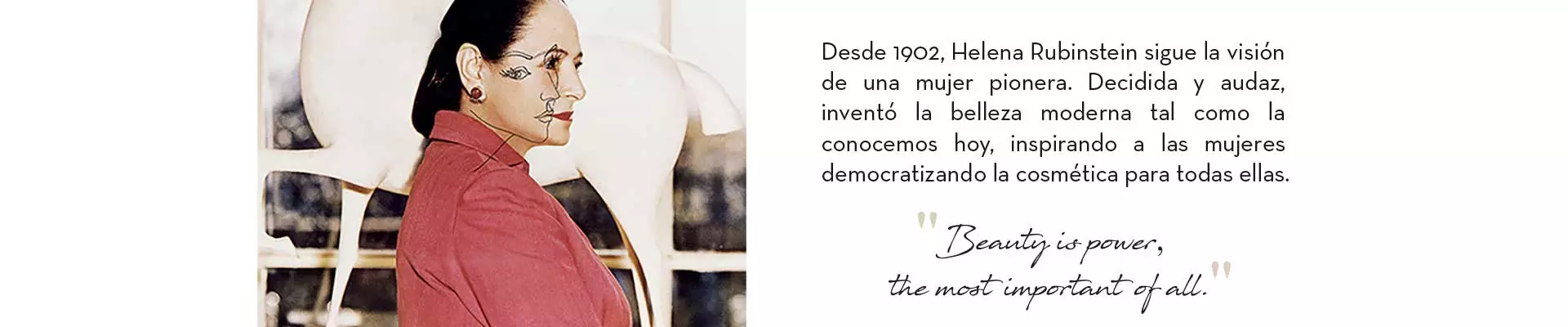Desde 1902, HR sigue la visión de una mujer pionera, Helena Rubinstein. Decidida y audaz , inventó la belleza moderna tal y como la conocemos hoy, inspirando a las mujeres durante década y democratizando la cosmética para todas ellas. Helena Rubinstein ha bbuscado siempre enriquecer su conocimiento asociándose con los mejores especialistas de la ppiel y de la salud: dermatólogos, cirujanos, nutricionistas, químicos y biólogos.