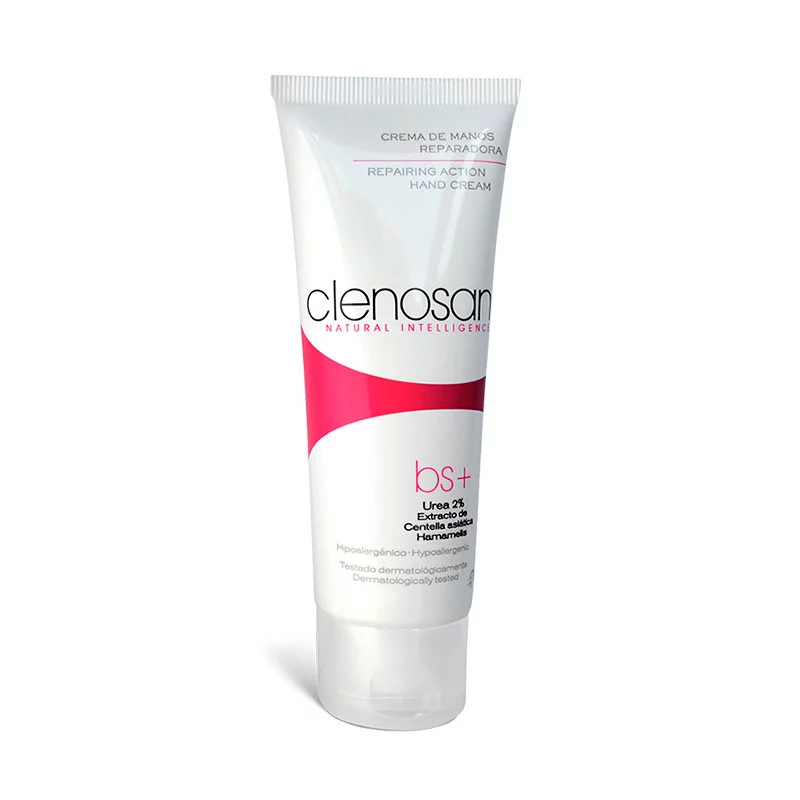 CLENOSAN Crema de Manos Mantenimiento es una fórmula hipoalergénica e hidratante (urea 2%), ingrediente cicatrizante y regenerador de la piel (centella asiática). También contiene extracto de hamamelis, que tiene propiedades antiinflamatorias y antiinflamatorias.