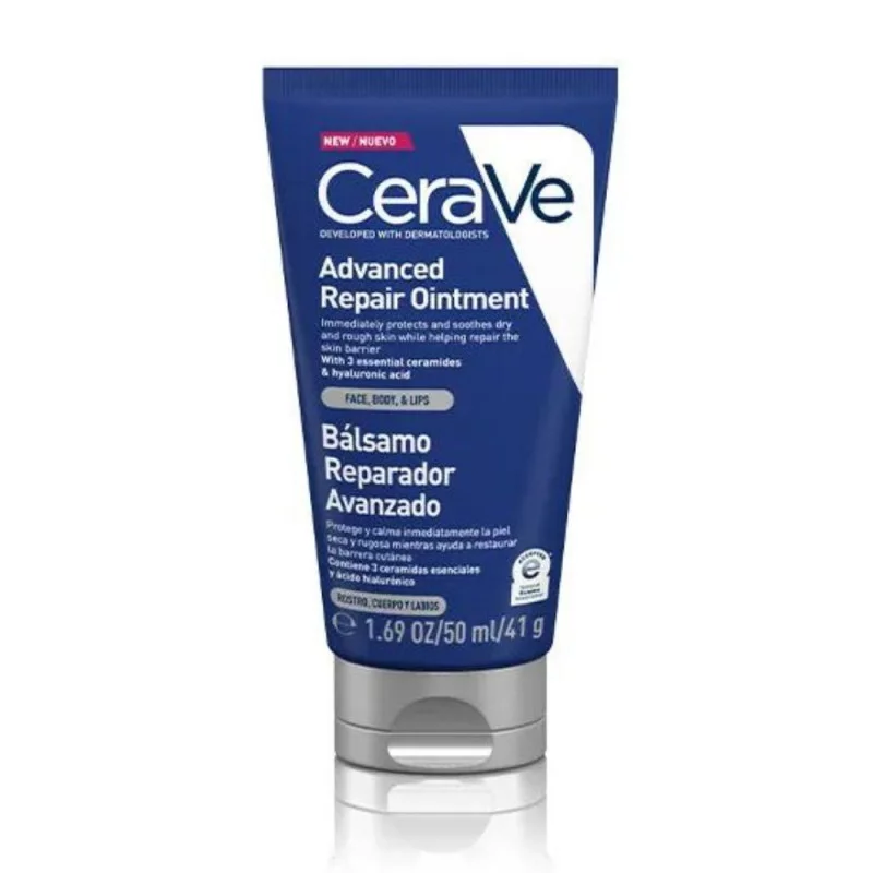 CeraVe Bálsamo Reparador Avanzado está formulado con vaselina, ácido hialurónico y 3 Ceramidas Esenciales. Protege, hidrata y alivia inmediatamente las pieles extremadamente secas, irritadas o agrietadas, mientras ayuda a restaurar la barrera cutánea.