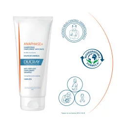 El champú complemento anticaída ANAPHASE+ es un producto de limpieza que prepara de forma eficaz el cuero cabelludo para los tratamientos posteriores. Su fórmula biodegradable actúa para fortalecer la fibra capilar y frenar la caída del cabello. Un champú fortificante que limpia el cabello y aporta volumen