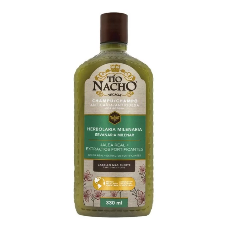 Consigue menos pelos en tu cepillo y más pelos en tu cabeza con champú Tio Nacho. Elaborado con una mezcla de ingredientes naturales que incluyen jalea real, extracto de germen de trigo, aloe vera y soja, este champú fortalece la fibra capilar y restaura la salud del cabello desde la raíz hasta las puntas. Además, ayuda a eliminar el exceso de sebo del cuero cabelludo, dejándolo suave y terso.