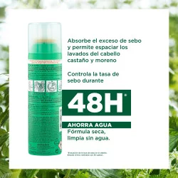Aliado eficaz contra los cabellos grasos, el champú seco a la ortiga de Klorane absorbe el exceso de sebo en 2 minutos, para purificar y refrescar el cabello sin mojarlo. El tono beis totalmente natural se adapta al cabello oscuro para dejar un acabado invisible. La acción seborreguladora de la ortiga y los polvos absorbentes controlan la producción de sebo durante 48 horas*, para poder espaciar más los lavados del cabello**. Después de su aplicación, el cabello castaño queda limpio y con volumen. El formato en spray sin aclarado ofrece una aplicación fácil para refrescar el cabello en cualquier momento mientras se ahorra agua.