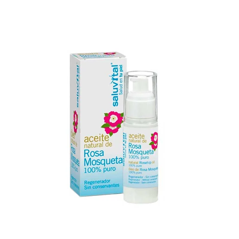 Favorece la regeneración de la piel gracias al caroteno, los flavonoides, la vitamina C y la vitamina A. Ayuda a reducir las estrías, cicatrices y arrugas. Saluvital Aceite de Rosa Mosqueta 30ml.