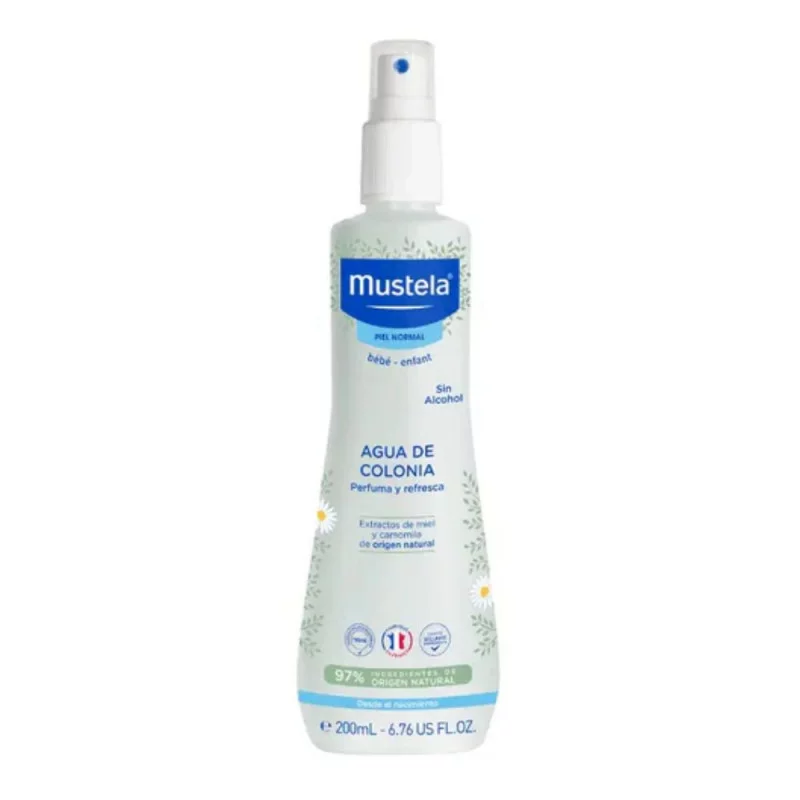 El bote de agua de colonia de bebé de Mustela tiene formato de 200ml con dosificador en spray para fácil aplicación sin malgastar producto. Esta agua de colonia tiene un perfume suave y agradable, en sintonía con el olor de tu bebé.