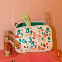 La maletita cierra gracias a una cremallera dorada de nailon. Además cuenta con un bolsillo lateral extraíble con botones a presión y con un bolsillo interior para una mejor separación.