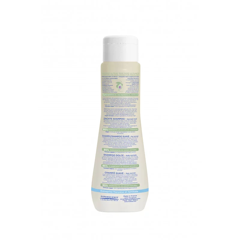 El champú suave con aguacate bio es el champú ideal para el cabello fino y delicado de recién nacidos, bebés y niños.