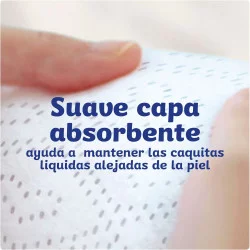 Especialmente diseñada para retener las caquitas líquidas en su interior evitando los molestos escapes traseros. Gracias al sistema de 3 capas de Dodot, la humedad se absorbe al instante, ayudando a que la piel de tu bebé respire. Varía su color para que sepas que tu bebé se ha hecho pipí. Con materiales de alta calidad para una increíble sensación de suavidad en su piel