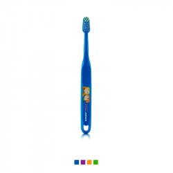 Incluye un agujero para pasar una cinta en caso de necesitar una mejor sujeción durante el cepillado o para identificar el cepillo con el nombre del niño.