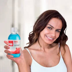 El enjuague PHB Total está indicado para la prevención eficaz de la caries, la placa y el control del mal aliento.